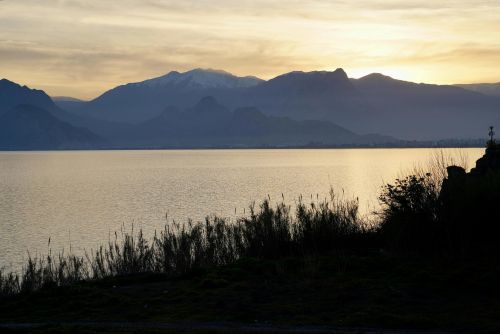 Peaceful beach scene at sunset with sun, sea, and sandy dunes in view. Ideal for nature themes.